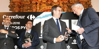 Durante o acto de entrega dos Premios Pyme Carrefour de Galicia, Feijóo subliñou que os produtos galegos son cada vez máis competitivos nos mercados internacionais e lembrou que, hoxe, a Marca Galicia constitúe todo un sinónimo de calidade e distinción.