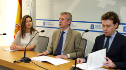 O vicepresidente da Xunta, Alfonso Rueda,acompañado da vicepresidenta da Comisión de Coordinación e Desenvolvemento da Rexión Norte de Portugal, Ester Gomes da Silva e do director xeral de Relacións Exteriores e coa UE, Jesús Gamallo, compareceu en rolda de prensa, dando a coñecer as principais caracterÃsticas do programa de Fondos Interreg para os vindeiros anos, -Programa Poctep-, aprobado a pasada semana en Faro.