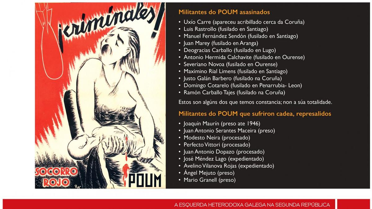 A mostra chega a Vigo logo de visitar outros puntos de Galicia, meses despois de cumprirse o 90 aniversario da fundación do Partido Obrero de Unificación Marxista (POUM), unha efeméride que os organizadores da mostra queren aproveitar para dar a coñecer como se formou este partido e cal foi o seu legado polÃtico.