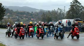 Los Amigos de la moto de Sanxenxo y el Moto Club Campo Redondo, que no dejan de trabajar en mejorar las instalaciones, cerrando todo el recinto y construyendo boxes nuevos. Con un dÃa de perros, la prueba se celebró bajo fuertes aguaceros que dificultó aún más la competición. Con las mismas categorÃas que el año anterior en Scooter (F70 y F50), además de la nueva de Minimotos.
