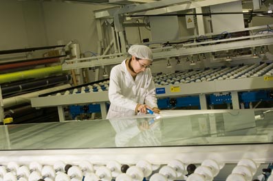 El nuevo vidrio de Cristal Pontevedresa incluye una técnica de control solar, mediante la cual el vidrio filtra la energÃa procedente de los rayos ultravioletas. AsÃ, se reducen las necesidades de refrigeración en las nuevas instalaciones de la compañÃa.