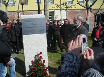 Ao fin da ofrenda floral, que rematou coa interpretación do Himno Galego, o alcalde e a corporación trasladáronse ao barrio de Esteiro para asistir ao acto oficial de “bautismo” da praza Manuel Amor Deus, situada fronte ao estaleiro. Alà o alcalde e o fillo de Manuel Amor Deus, Germán Amor Varela, descubriron o monolito na súa honra. No acto participou tamén o secretario xeral de CC.OO., Ignacio Fernández Toxo, que, tras a intervención da concelleira de Cultura, Mercedes Carbajales, pronunciou unhas palabras.