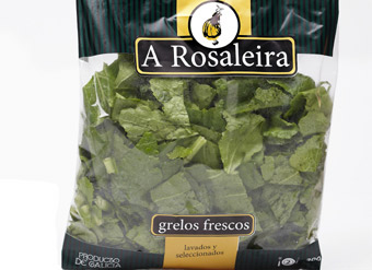 A Rosaleira introduce en el mercado un producto pionero y único de la 4ª gama: los grelos envasados en fresco y listos para cocinar tras un cuidado proceso de producción, selección, lavado y cortado, que potencia el consumo de un producto autóctono con importantes propiedades nutricionales y con el valor añadido de facilitar su preparación e incorporación a platos saludables.