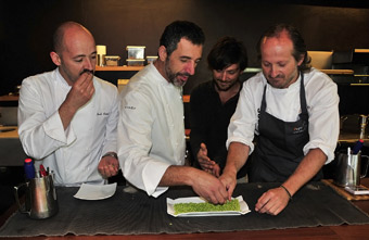 FotografÃa: Merluza con guisante lágrima y babyleaf con una reducción de las vainas del guisante lágrima y espuma de jamón ibérico. Pepe Solla.