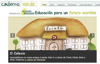No seu empeño por dar un paso adiante no ámbito da educación ambiental dos escolares galegos, Sogama, co apoio da ConsellerÃa de Medio Ambiente e a colaboración de Botóns (Portal Galego de Educación), lanza unha páxina web que, baixo o tÃtulo “Caderno Verde” e o dominio www.cadernoverde.com, pretende ser un recurso didáctico co que introducir, de forma transversal, as boas prácticas ambientais nas distintas disciplinas que conforman o deseño curricular do ensino Primario.