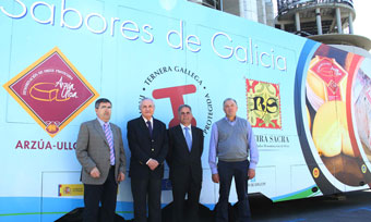 O delegado da Xunta de Galicia en Madrid, José Ramón Ónega, participou hoxe na presentación de produtos galegos certificados da Denominación de Orixe Protexida Arzúa-Ulloa, da Denominación de Orixe Ribeira Sacra e da Indicación Xeográfica Protexida Ternera Gallega que os seus consellos reguladores realizaron na explanada do madrileño Estadio Bernabéu, dentro dunha actividade promocional que están a realizar por diferentes cidades españolas.