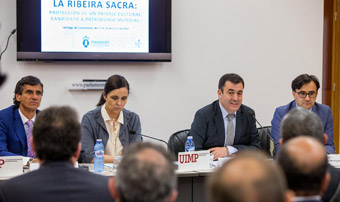 O conselleiro de Cultura, Educación e Ordenación Universitaria, Román RodrÃguez, participou na apertura do curso “A Ribeira Sacra. Protección dun paisaxe natural. Candidato a Patrimonio Mundial”, organizado pola Universidade Internacional Menéndez Pelayo, e que ten como principal obxectivo impulsar a inclusión deste enclave na lista do Patrimonio Mundial da UNESCO. O curso foi inaugurado pola presidenta do Parlamento de Galicia, Pilar Rojo; que estivo acompañada do director en Galicia da Universidade Menéndez Pelayo, Domingo Bello Janeiro; e do Valedor do Pobo, José Julio Fernández.