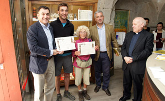 No acto de presentación da Credencial do peregrino e do Certificado de distancia o conselleiro estivo acompañado polo deán da catedral de Santiago, Segundo Pérez; e polo secretario xeral de PolÃtica LingüÃstica, ValentÃn GarcÃa..