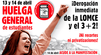 Desde el Sindicato de Estudiantes llamamos a la unidad a todas las asociaciones estudiantiles de izquierdas para que se unan a la huelga el 13 y 14 de abril, y al conjunto de la comunidad educativa, a los padres y madres, a los profesores, a sus organizaciones y sindicatos de clase, a confluir en esta movilización y volver a levantar bien alto la bandera de la Marea Verde, dejando muy claro al futuro gobierno sea el que sea finalmente que no hemos luchado estos años para que todo siga igual.