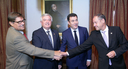 El conselleiro de Cultura, Educación y Ordenación Universitaria, Román Rodríguez, mantuvo una reunión de trabajo con los rectores de las universidades de Santiago, Juan Viaño; de A Coruña, Julio Abalde; y de Vigo, Salustiano Mato; para avanzar en la mejora del posicionamiento del Sistema Universitario Gallego (SUG) en los rankings de prestigio a nivel internacional y para avanzar en el diseño de acciones específicas que contribuyan a una gestión eficiente de sus estructuras de investigación.