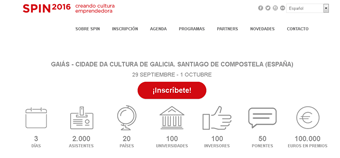 Spin2016 (www.spin2016.org) é o maior evento de emprendemento universitario da rexión iberoamericana. De inscrición gratuíta, Spin2016 terá lugar do 29 de setembro ao 1 de outubro na Cidade da Cultura de Galicia, espazo que impulsa proxectos innovadores no ámbito do emprendemento, a tecnoloxía e a cultura.