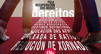 Baixo o lema Pola recuperación dos nosos dereitos, a CIG-Ensino acaba de lanzar unha campaña de recollida de sinaturas co obxectivo de reclamar a restitución dos dereitos laborais e salariais perdidos nos últimos anos e de reivindicar unha mellora nas condicións de traballo do profesorado galego. Ao longo deste segundo trimestre, delegados e delegadas da central nacionalista visitarán todos os centros educativos do País para celebrar asembleas informativas e achegarlle ao profesorado os pregos de sinaturas que posteriormente lle serán entregados ao conselleiro de Educación e Cultura.