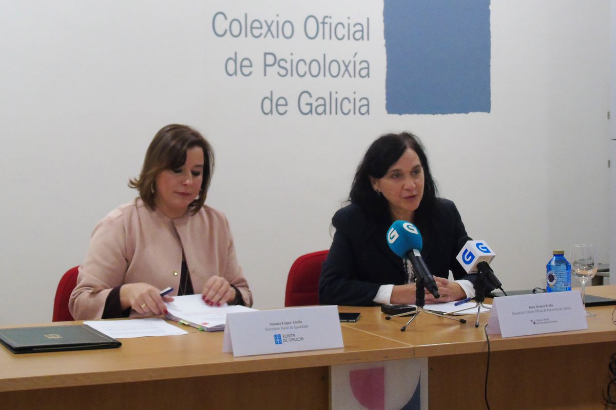 Esta mañá, a decana do Colexio Oficial de Psicoloxía, Mª Rosa Álvarez Prada, e a secretaria xeral da Igualdade da Xunta de Galicia, Susana López Abella, asinaron un convenio de colaboración para a posta en marcha dun servizo pioneiro no Estado de garda psicolóxica especializada e permanente para as mulleres que sofren violencia de xénero e os seus fillos e fillas menores de idade.