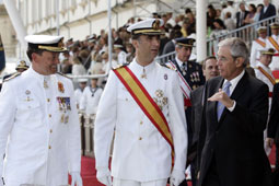 Felipe de Borbón ha presenciado, además, la jura de bandera de los 64 alumnos aspirantes de primer curso, y en ambos actos estuvo acompañado por el ministro de Defensa, José Antonio Alonso, el presidente de la Xunta de Galicia, Emilio Pérez Touriño, el delegado del Gobierno en la comunidad, Manuel Ameijeiras y por la presidenta del Parlamento gallego, Dolores Villarino, entre otras autoridades civiles y militares.