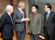 Pérez Touriño y el responsable del grupo empresarial chino analizaron la evolución de las relaciones económicas entre China y Galicia. Los negocios de la Comunidad autónoma en toda Asia se han multiplicado por diez en los últimos cuatro años. Hoy en China se producen muebles de matriz gallega, material eléctrico y componentes de automoción de empresas auxiliares del automóvil de origen gallego. Así, las inversiones de Galicia con dirección a China acumularon en los dos últimos años un monto global de 12,5 millones de euros y representan un 8,1 por ciento de las realizadas desde el conjunto del Estado en este periodo. En el primer semestre del año, se contabilizaron inversiones gallegas con destino a aquel país por un montante total de 6,2 millones, un 77% más respecto al mismo periodo del año anterior. Sobre las relaciones comerciales, las exportaciones gallegas con destino a China en el 2006 alcanzaron un valor de 93,6 millones, lo que representa un 5,4% del valor total del conjunto del Estado. El principal capítulo de exportaciones se refiere al apartado de alimentos, con el 40% del total de exportaciones, mientras la automoción y los bienes de equipo tienen un peso relativo del 27 y el 21, respectivamente. Las importaciones gallegas procedentes de China registraron un valor de 497 millones el pasado año, un 25% más elevadas que en 2005.