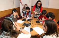 Para iso dúas monitoras dirixiron uns obradoiros de radio en vivo nos que os mozos se converteron por unhas horas en xornalistas amateur e comprobaron a maxia dun medio ao que, de seguro, lle quedan moito máis que outros 75 anos de vida.