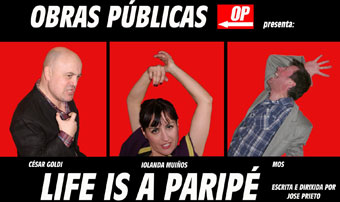 A formación compostelá Obras Públicas propón con este espectáculo un novo xénero de teatro, o paripé, onde a parodia e o humor deben ser rescatados dos bares e levados de volta aos teatros. César Goldi, Mos e Iolanda Muíños compoñen o trío interpretativo desta montaxe dirixida polo gañador de dous premios Max José Prieto na que segundo a propia compañía mesturan en proporcións similares música (33%), teatro (33%) e cachondeo (33%), o que dá un total final de cen por cen de paripé.
