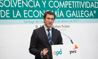 El presidente de la Xunta, Alberto Núñez Feijóo, convocará una reunión con el secretario xeral del PSdeG, Manuel 'Pachi' Vázquez, y el portavoz nacional del BNG, Guillerme Vázquez, para abordar el futuro de Novacaixagalicia, tras conocer "el contenido concreto" del plan que tiene el Gobierno central con respecto a la modificación de los requisitos de solvencia de las entidades financieras. Lo ha anunciado en la conferencia que precedió a una comida-coloquio organizada por la Asociación para el Progreso de la Dirección (APD), en la que analizó la solvencia y competitividad de la economía gallega ante unas 300 personas -empresarios, autoridades y miembros destacados de la sociedad gallega-, entre las que se encontraban los copresidentes de Novacaixagalicia, Mauro Varela y Julio Fernández Gayoso.