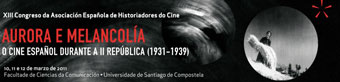Especialistas chegados de toda España e doutros países como Francia, Holanda ou México, ata un máximo de 300 asistentes, asistirán a Aurora e melancolía. O cine español durante a II República (1931-1939), título do décimo terceiro congreso da Asociación Española de Historiadores do Cine (Aehc). O simposio terá lugar na Facultade de Ciencias da Comunicación de Santiago do 10 ao 12 de marzo vindeiros baixo o patrocinio da USC. De feito, a catedrática da universidade compostelá Margaria Ledo é a responsable do comité organizador, mentres que a presidencia do congreso recae no director e produtor Eduardo Ducay.