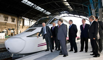 El primer tren híbrido que circula por una vía ferroviaria española ha sido el escogido para realizar un viaje de prueba entre Santiago de Compostela y Ourense, trayecto que ha completado en 49 minutos alcanzando picos de velocidad de 203 kilómetros por hora. La llegada del AVE el próximo 10 de diciembre reducirá este tiempo hasta "los 30 o 35 minutos", que contrastan con la hora y media que se necesitaba hasta ahora. El ministro de Fomento, José Blanco, ha realizado el viaje de presentación de este tren Alvia S-730 y ha aprovechado para anunciar que será el modelo que cubrirá el trayecto entre Madrid y Galicia desde mediados de 2012. Esto permitirá comunicar las capitales gallega y española en menos de cinco horas a través de un tren adaptable al ancho de la vía y que compatibiliza un motor diésel con otro eléctrico, de modo que puede alcanzar una velocidad máxima de 250 kilómetros por hora.