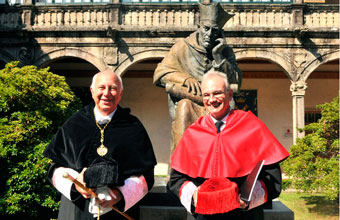 En el acto, el rector también ha procedido a la entrega de la Insignia de Fonseca a 45 integrantes de la comunidad universitaria, 14 del cuadro de personal de administraciones y servicios y los restantes del personal docente e investigador. Con estos galardones, la Universidade de Santiago de Compostela reconoce los "más de 30 años de servicios prestados" a la institución por parte de cada uno de los trabajadores, en cuya representación han intervenido el profesor Guillermo Rojo y María José Justo.