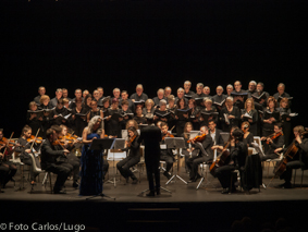 Ante un numeroso público e no Auditorio Municipal Gustavo Freire, a orquestra e a coral interpretaron un programa integrado por pezas como o "Te Deum" de Xoán Montes; "Caro mio ben", de Tomaso Giordani; "Laudate Dominum (Das Vesperae solennes de confessore, k339,5º movemento)" e "Isis und Osiris (da ópera Die Zauberflöte, k620, acto 2º, nº 10), de Wolfgang Amadeus Mozart.