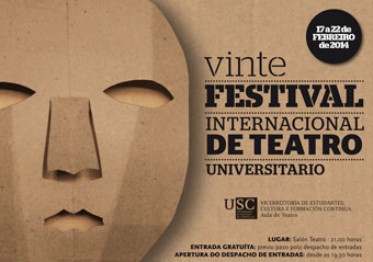 A Consellería de Cultura, Educación e Ordenación Universitaria colabora coa Universidade de Santiago de Compostela (USC) na organización do XX Festival Internacional de Teatro Universitario (FITU), para o que cede o Salón Teatro como escenario da programación que se desenvolve desde hoxe e ata o sábado 22. Cinco compañías de Galicia, Estados Unidos, Porto Rico, Lituania e Bélxica participan nesta vixésima edición do encontro, que ofrece unha función diaria ás 21.00 horas.