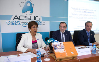 El secretario general de Universidades de la Consellería de Cultura, Educación y Ordenación Universitaria, José Alberto Díez de Castro, participó en la presentación de resultados del Estudio de la inserción laboral de los titulados en Másteres en el Sistema Universitario de Galicia 2007-2008, 2008-2009 y 2009-2010', un análisis pionero a nivel nacional en este campo. Esta nueva evaluación del SUG, que es el único estudio sobre la inserción laboral de estas enseñanzas, sigue además la astilla del informe anual que la Agencia para la Calidad del Sistema Universitario de Galicia (ACSUG) hace de la inserción laboral de los titulados en licenciaturas y grados, que cuenta con la muestra más extensa analizada en el Estado español.
