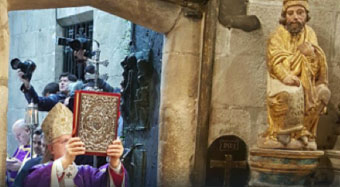 El arzobispo de Santiago de Compostela, monseñor Julián Barrio, abrió en la Catedral la Puerta de la Misericordia, inicio en la Archidiócesis del Jubileo Extraordinario de la Misericordia convocado por el papa Francisco. En su homilía, aseguró que la puerta de la Misericordia se ha abierto para darnos la posibilidad de experimentar el amor de Dios que consuela, perdona y da esperanza. Monseñor Barrio dijo que la alegría a la que Dios nos invita, exige compromiso moral y social y añadió que en medio de los problemas que presenta nuestra sociedad, los cristianos, siguiendo los consejos de Juan Bautista, han de compartir solidariamente los propios bienes con el prójimo, practicar la justicia en la recaudación de los impuestos, ser moderados en el ejercicio del poder. Unha sociedade, apuntó monseñor Barrio, non pode ser humana sen misericordia, fonte inspiradora de xustiza social, en línea con lo que se indicaba en su Carta Pastoral, un texto donde invitaba a todas las entidades financieras y comerciales a hacerse cargo del costo de un día de las instituciones benéficas que cuidan de los más desprotegidos y olvidados en nuestra comunidad diocesana. Al término de la ceremonia litúrgica se dio a conocer una obra de misericordia diocesana, a la que irán destinadas colectas especiales y esfuerzos de toda la Diócesis, dedicada especialmente a las personas sin hogar.