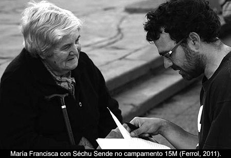 Cando empezaba abril, e tamén en maio, saían os enxames. A min, de pequena, mandábanme reparar as abellas para cando saíran os enxames. Case sempre levantaban o voo pola mañá. Tocábamos unha azada, para que pousaran. Diciamos: Pousa, pousa. Para que non se foran para moi lonxe, pois, ás veces, perdíanse.