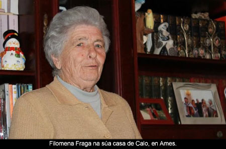 Filomena Fraga, veciña de Calo, parroquia de Agrón, concello de Ames naceu no ano 1926. A maiores dos traballos da casa e das fincas, conseguiu servir en Negreira na casa dun médico, onde gozaba cos contos que mercaba para os fillos deste. Na súa casa tan só tiña un libro de misa. Casou cun home ó que tamén lle gustaba ler, e con tres veciños máis de Calo mercaban, ás veces, algunha prensa e, ela, algunha revistiña na feira de Negreira co que saciaba esa ansiedade que se lle evitou de nena.