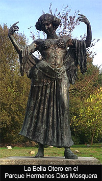 Agustina Carolina Otero Iglesias nació en Valga el 20/9/1880 y murió en Niza el 11/4/65, tiene una historia truculenta, recogiendo piñas para vender fue violada a los 10 años quedó en estado somático grave, con importantes desgarros y hemorragia se llegó a temer por su vida, fue cantante, bailarina, actriz, cortesana fue muy rica y murió en la pobreza, pues le fascinaba el juego, era ludópata y ahí en Montecarlo la perdió. Un detalle es que nunca dijo que era gallega, pero su testamento que fue insignificante 600 francos lo dejo para los niños pobres de Valga.