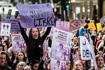 anteriores. Pero no solo fue en Madrid, esta vez España se teñía de violeta, por la lucha por la igualdad. En Barcelona acudían 200.000 personas, en Sevilla 50.000, en Valencia 120.000, en Vigo 105.000 personas, y en Castellón, mi tierra natal, 10.000 personas, duplicando las cifras del año anterior.