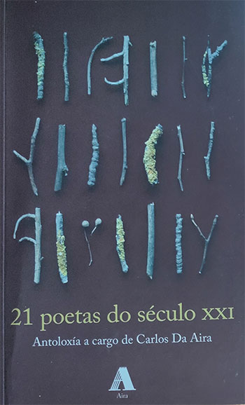 editorial de Allariz, editada en 2021. Na que están presentes 21 poetas nacidos no século XXI. Neste caso, o número 21 ten distinción e destaque, nun tempo de convulsións que, sen dúbida, estes poetas, ademais, encetan o terceiro milenio da nosa era, incidindo en curiosos parámetros de lealdade e fidelidade á nosa lingua, nunha emersión de destaque en cada un destes poetas que aglutinan esta nova xeración ben abastada de portentos e desde xa, moitos deles, temos que asumilos como poetas consagrados, e outros en vía de conquerir este don. Estes rangos supoñen para a poesía galega marcar un tempo necesario de innovación que manifesta o noso carácter de interiorizarnos nesa metafísica tan personalizada na nosa identidade que proclaman estes creadores da nosa poesía. Pese ás mudanzas precipitadas deste terceiro milenio mediático, tantas veces necesarias en propostas dinámicas, como ben interpretou Camões: "Mudan-se os tempos, mudan-se as vontades/ muda-se o ser, muda-se a confianza;/ todo o mundo é composto de mudança,/ tomando sempre novas qualidades". Desta primeira estrofa do soneto camoniano, extraemos unha cuestión que é vital para entender a mudanza proposta por estes 21 poetas, desta selección lírica, e nunhas circunstancias de excesos, podemos cifrar novidosas e amplas correspondencias nunha óptima e obrigada descuberta que protagonizan estas voces de rigor e innovación.