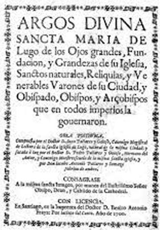 Argos Divina Sancta Maria de Lugo de los Ojos Grandes, fundaciòn y grandezas de su Iglesia, Sanctos naturales, reliquias y venerables varones de su ciudad y obispado, obispos y arzobispos que en todos imperios la governaron.