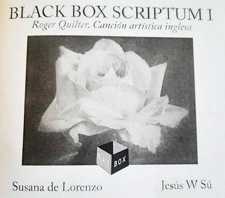 última rosa del verano o Sobre Tennyson -Nosotros somos la luna esférica:/ ahora tú eres la cara oculta/ y yo soy la luna llena-, apuntándose la galería Black Box, abierta a diversas inquietudes artísticas, un tanto exclusivo enriquecido con la ilustración musical de la presentación en la que Susana de Lorenzo acompañada por el pianista Rupert Twine interpretaron bellísimas canciones de concierto de autores británicos de la primera mitad del S. XX, tales como las del autodidacta E. Elgar, R. Vaughan Willians, que mezcla el universo modal de la canción popular inglesa con influencias impresionistas, B. Britten, conceptuado por la crítica como uno de los compositores más significativos de la música de su país, R. Quielter, del que se cumple ahora el 70 aniversario de su fallecimiento, E. Coates, autor de memorables melodías de música ligera, I. Novello, que llegó a ser el artista más popular del Reino Unido en su momento y H. Wood, con sus canciones estilo balada como