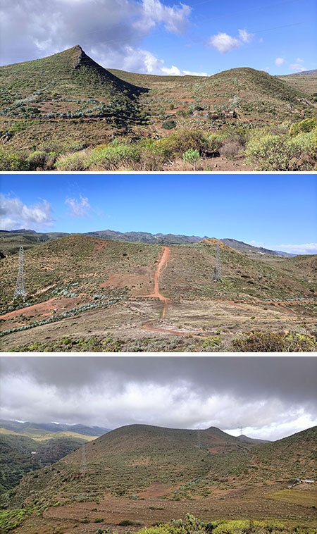 No puedo cerrar el artículo sin comentar la tristeza que provoca la falta de vigilancia sobre las motos que destrozan nuestro paisaje. El pasado sábado, día siete de diciembre, servía de guía a un grupo de amigos interesados en conocer las montañas de El Gallego y El Melosal. Nos encontrábamos en la cima de El Gallego cuando dos irrespetuosos motoristas -es el término más suave que puedio dedicarles-, abrían una nueva vía erosiva por la cara norte de las montaña de Topino -es la tercera que abren en este cono volcánico-, reventando el paisaje de la ladera, originando una brecha donde, eliminada la tierra fértil -ver la desgarradora fotografía adjunta a este artículo-, la erosión y el tiempo se encargarán de desnudar la roca, quedando la imagen del cono volcánico mancillada para siempre.