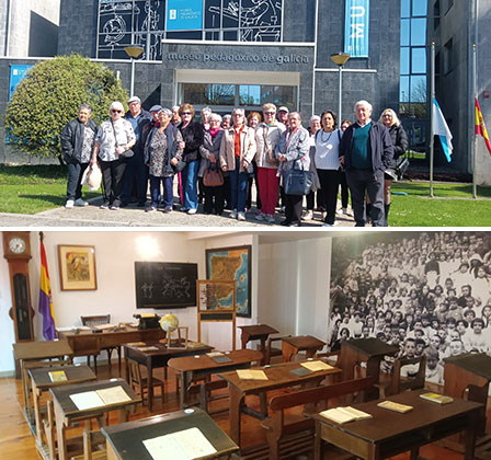 Visitando las distintas plantas que tiene el museo, parando especialmente en las distintas escuelas de la historia de España y de Galicia en particular: Escuela de Ferrado, escuela de la República, Escuela Franquista y su evolución hasta hoy. En éste viaje por la Historia de la Educación y las distintas leyes, se le dió especial atención,en el DÍA DEL LIBRO, a los libros que se utilizaban en esos momentos para enseñar, así como también, a los expedientes de personajes importantes como: Wenceslao Fernandez Flórez, Picado y distintos personajes Políticos.