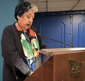 Dio comienzo el acto con la salutación de la vocal de cultura de la centenaria Sociedad, la pintora Mary Carmen Calviño Iglesias; su intervención se centró en exponer al público, el significado de la celebración; hizo un sucinto recorrido por el devenir de los tiempos, haciendo ver.