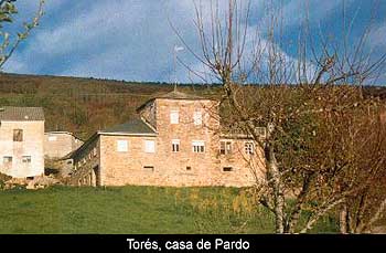 En la casa de Pardo de Torés, escudo cuartelado: 1º. León rampante, mirando a la derecha; 2º. Pino; 3º. Pino; 4º. Truchas gayadas de los Gayoso.