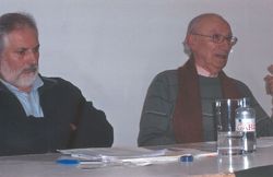 Na foto, o autor do artigo e Andrés Beade nun dos últimos actos públicos deste, en Paderne o 23 de febreiro de 2007, na conferencia Memoria da República e da represión franquista na comarca de Betanzos, impartida por ambos e organizada pola asociación Roxín Roxal.